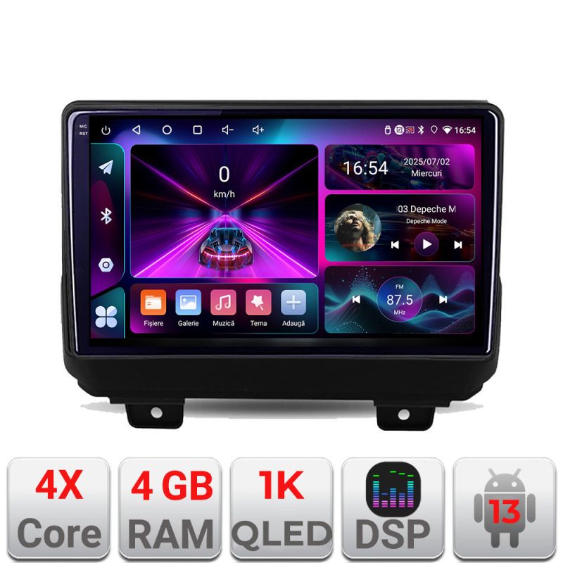 Navigatie Jeep Wrangler 2018- A-WRANGLER 4+64 InCell Display 1K Android Waze USB Navigatie Internet Youtube Radio