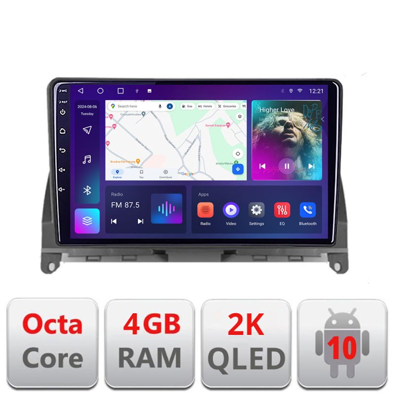 Navigatie Mercedes W204 2008-2012 C-W204 Android Octa Core Ecran 2K QLED GPS 4G 4+32GB 360 KIT-W204+EDT-E409-2K