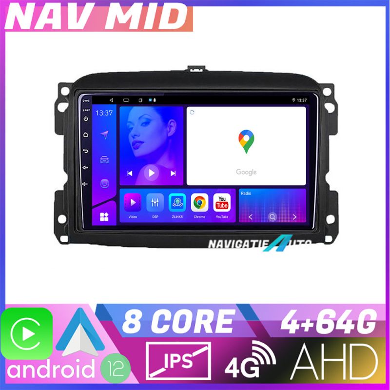 Navigatie Fiat 500 2015 2021 KIT 500new EDOTEC-LITE Android Ecran 720P Octa Core 4 64 Carplay