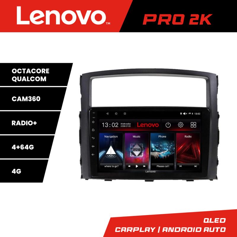 Navigatie Mitsubishi Pajero Lenovo Kit-452 8 core QLED 2K 4+64 360 Android Waze USB Navigatie Internet Youtube Radio