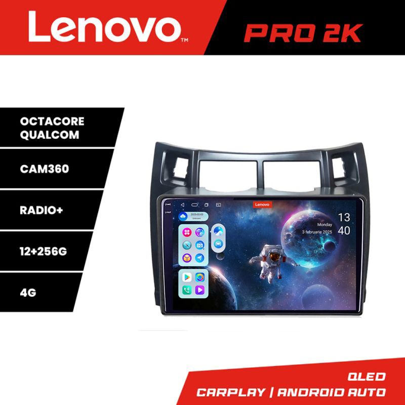 Navigatie Toyota Yaris 2008-2011 Lenovo Kit-YARIS08 8 core QLED 2K 12+256 360 Android Waze USB Navigatie Internet Youtube Radio Lenovo