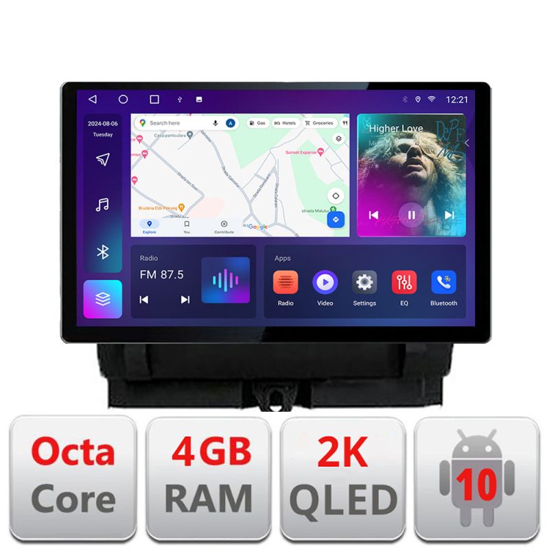Navigatie dedicata Audi Q3 2011-2018 Edonav ecran 13" 2K 4+32 Android Waze USB Navigatie 4G 360 Toslink Youtube Radio KIT-q3 si E