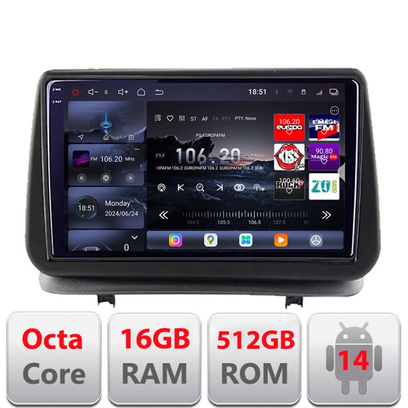 NavigatieRenault Clio 3 2005-2013 Edotec Kit-Clio3 8 core QLED 2K 16+512GB 360 Android Waze USB Navigatie Internet Youtube Radio