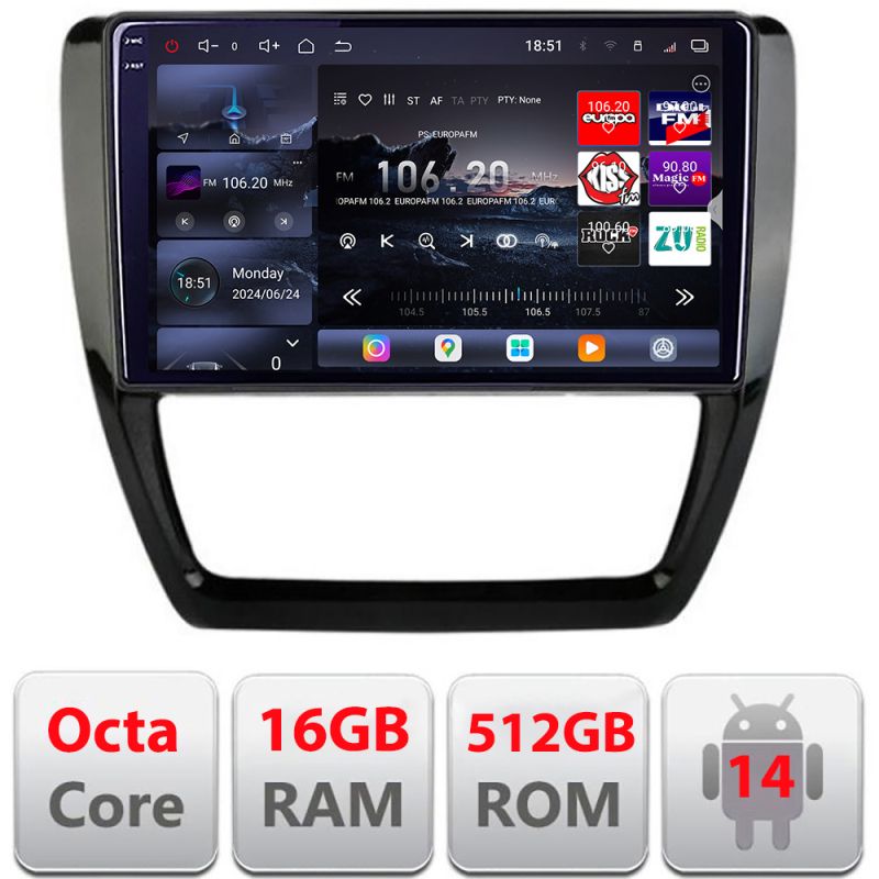 Navigatie VW Jetta 2011-2018 Edotec Kit-JETTEdotec Kit-15 8 core QLED 2K 12+256GB 360 Android Waze USB Navigatie Internet Youtube Radio