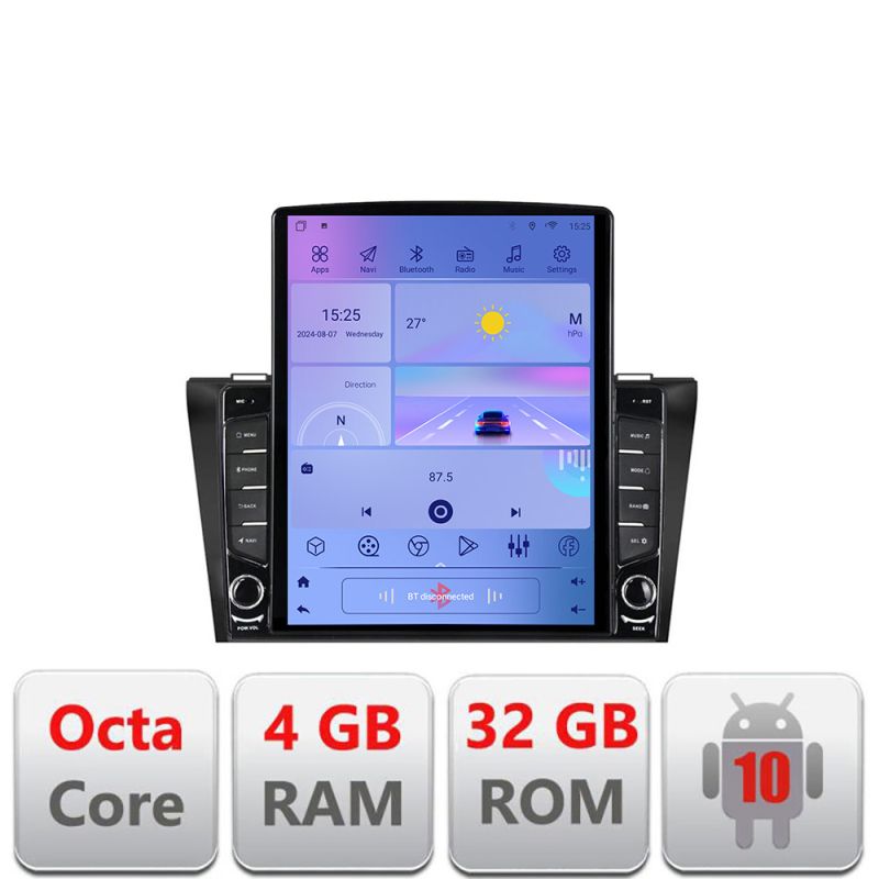 Navigatie Mazda 3 2004-2009 G-161 ecran tip TESLA 9.7" cu Android Radio Bluetooth Internet GPS WIFI 4+32GB DSP 4G Octa
