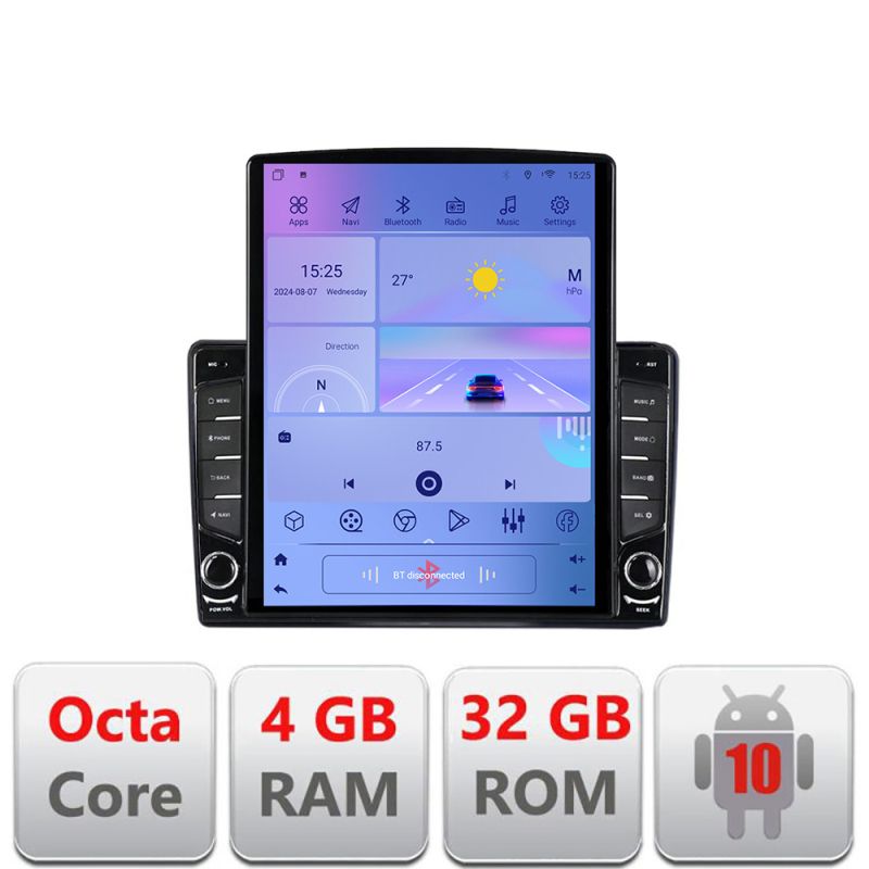 Android 10 ∙ Octa Core ∙ 4GB RAM+32GB ROM ∙ 4G și WiFi ∙ GPS ∙ intrare de cameră 360° ∙ intrare USB cameră DVR ∙ ecran uriaș vertical de 9.7”